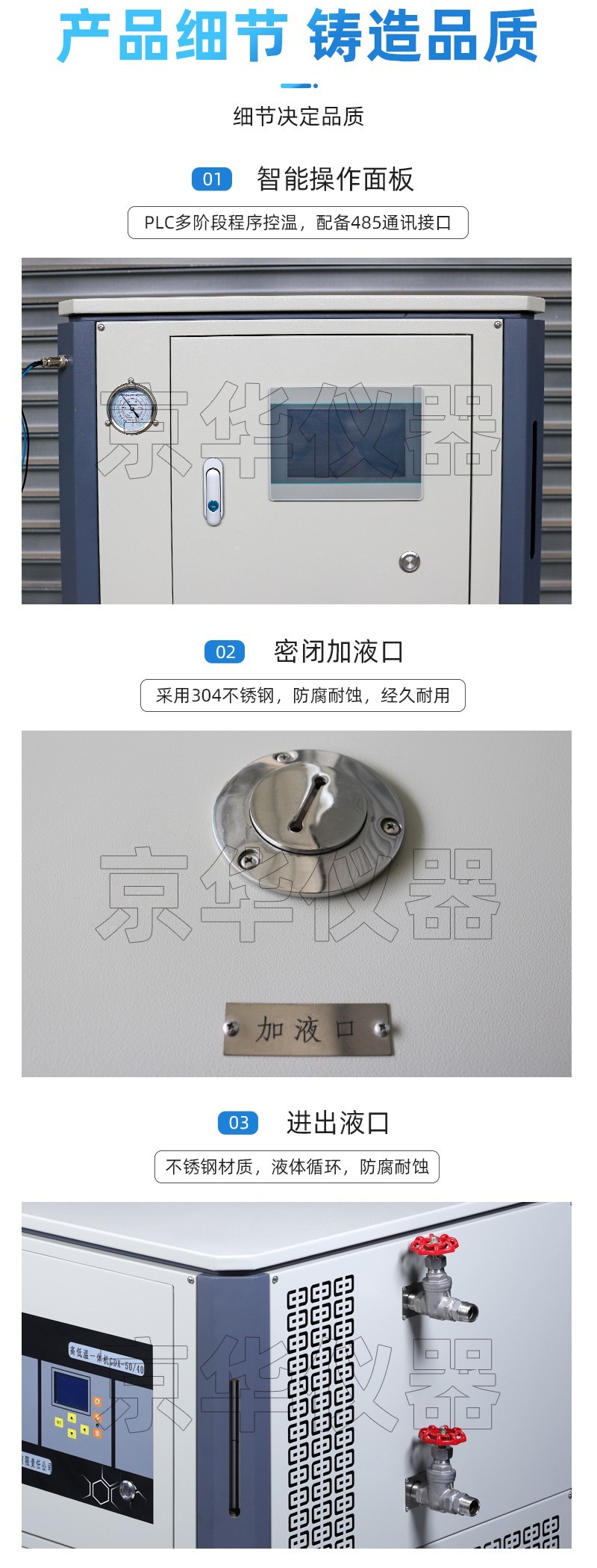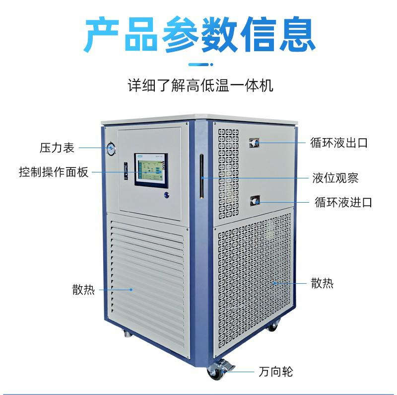 中型高低溫一體機(jī)裝置整個系統(tǒng)的液體循環(huán)是密閉的,系統(tǒng)帶有膨脹容器,膨脹容器和液體循環(huán)系統(tǒng)是絕熱的,不參與液體循環(huán),只是機(jī)械的連接,不管循環(huán)液體的溫度如何,膨脹容器中的介質(zhì)始終保持室溫。由于整個液體循環(huán)是密閉的系統(tǒng),所以低溫時沒有水汽的吸收,高溫時沒有油霧的產(chǎn)生。公司可以提供工作溫度很廣的導(dǎo)熱油,...